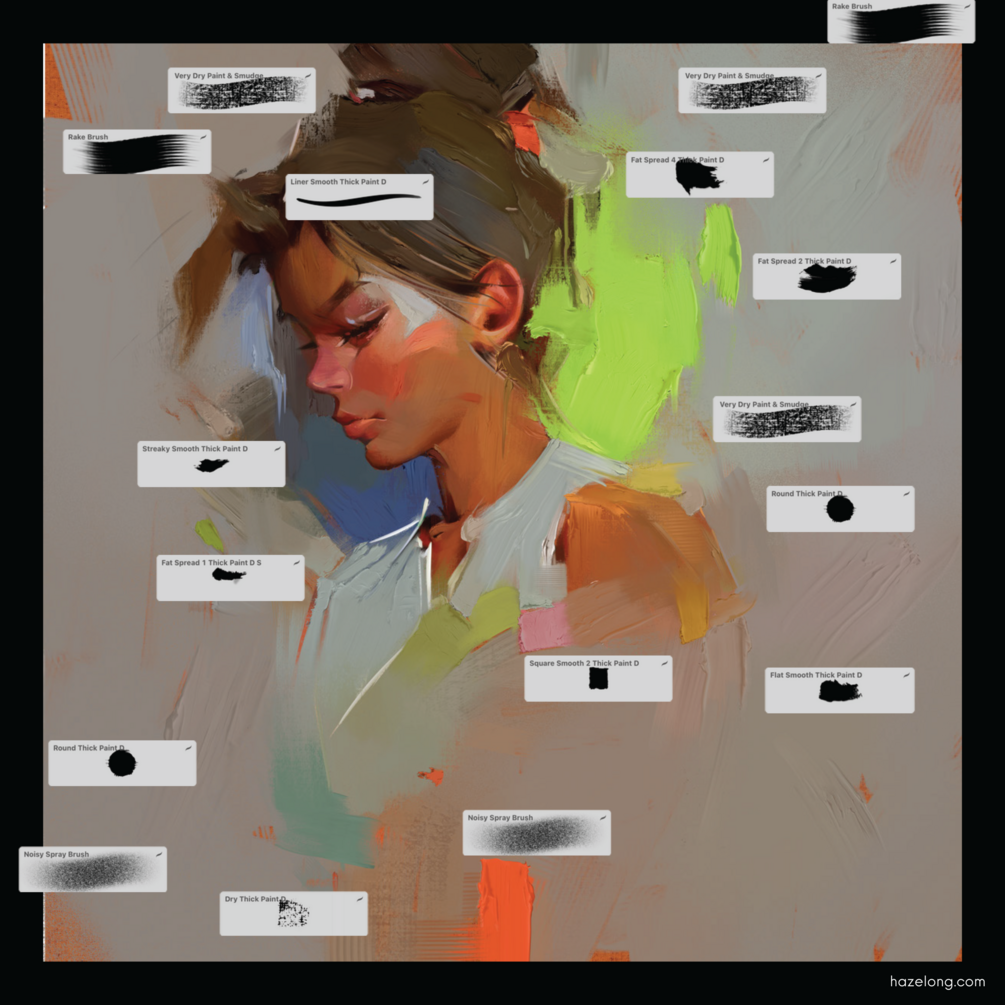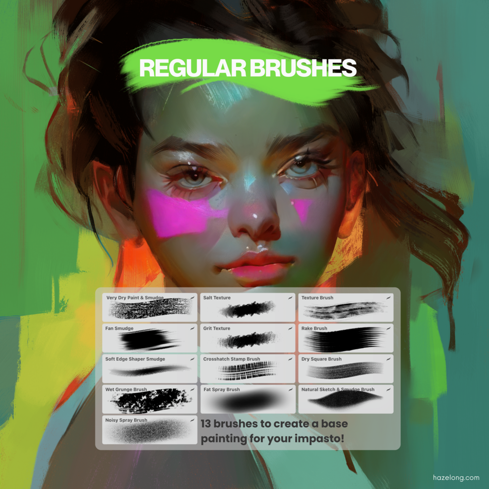 Premium version - 45 brushes, 6 canvas textures, 5 procreate projects, and pdf guide. Due to the file size, the files are separated for easier downloading.